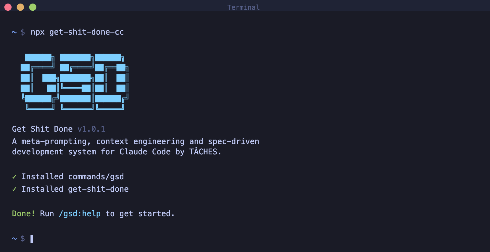 npx get-shit-done-cc --claude --global