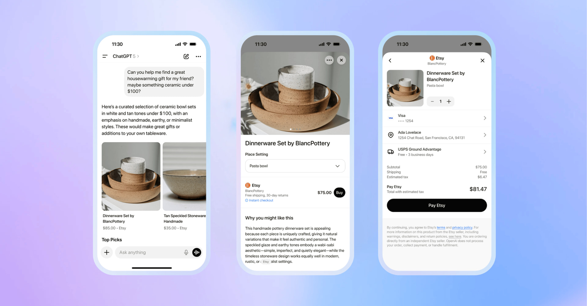 首发场景为 ChatGPT 的 Instant Checkout,美国用户可在 ChatGPT 内直接购买 Etsy 商品,后续已接入超 100 万 Shopify 商家;Salesforce、PwC 等企业也已基于 ACP 构建相关功能,协议开源后由 OpenAI 和 Stripe 联合治理。