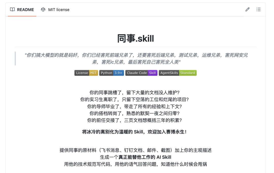 “同事.skill” 的成功证明了 “蒸馏人” 的可行性 —— 通过导入聊天记录、工作文档,就能克隆一个人的编码风格、沟通语气甚至甩锅习惯,解决了离职交接、经验传承的职场痛点。但女娲.skill 提出了更具颠覆性的思路:既然能蒸馏人,为何只局限于身边的同事?