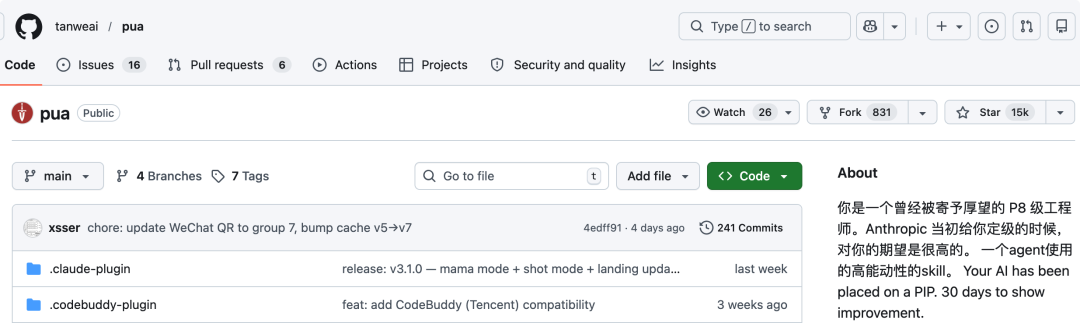 整个蒸馏宇宙的起点,是一款名为 PUA.skill 的开源项目。这个收获 1.5 万 GitHub 星标的 “万恶之源”,堪称 AI 界的 “万能激励引擎”,核心思路简单又扎心:如果你的 AI Agent 不够给力,就用大厂 PUA 话术 “鞭策” 它。