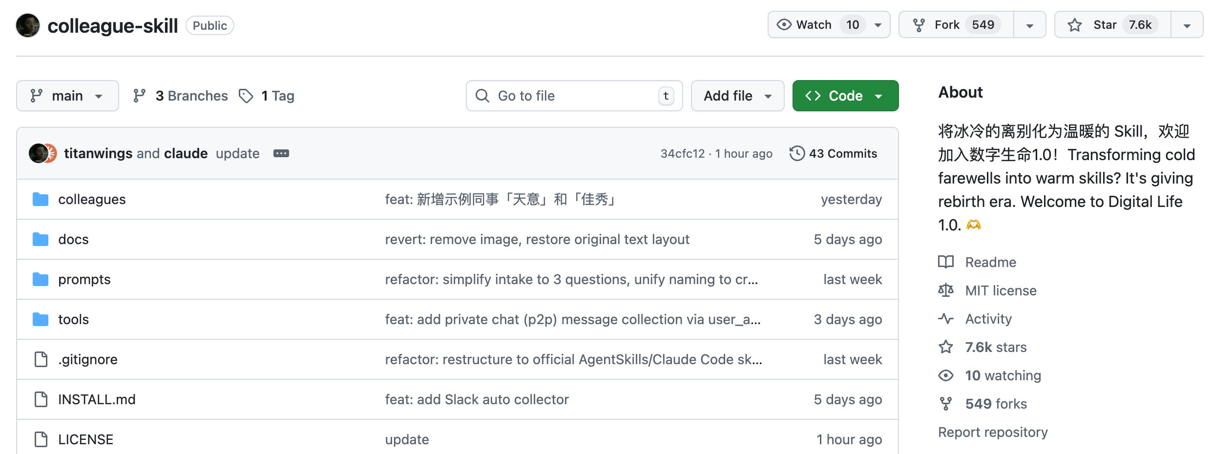 项目 GitHub 地址:https://github.com/titanwings/colleague-skill