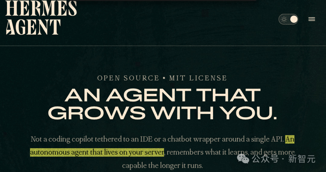 Hermes 智能体以 “可自主学习成长的智能体” 为核心定位,走出了与云端托管 AI 完全不同的路线:数据、记忆、技能完全归用户所有,实现低成本、私有化、可持续进化的 AI 体验。