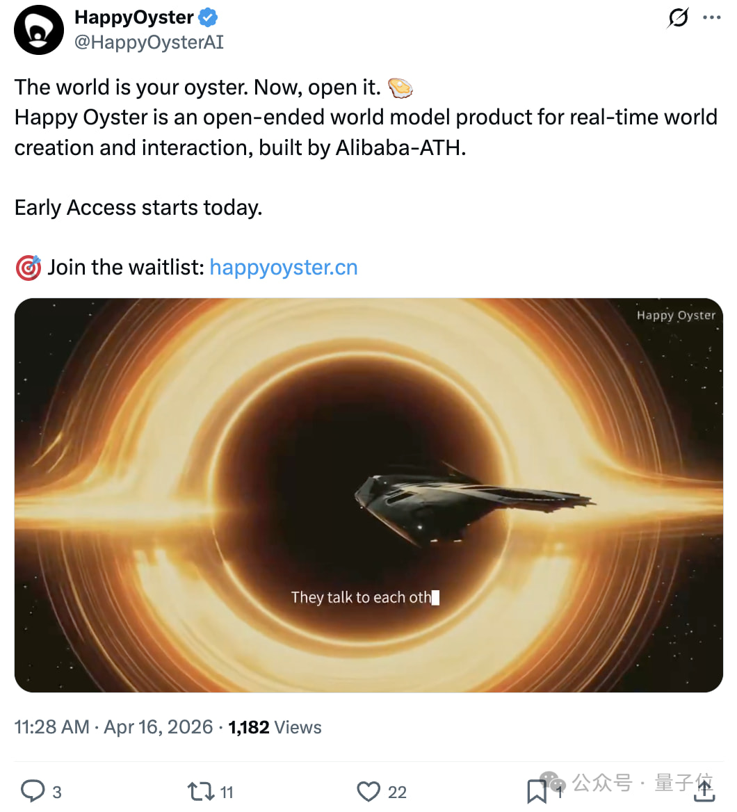 AI 世界模型赛道再迎重磅玩家!成立刚满一个月的阿里巴巴 ATH(Alibaba Token Hub)事业群,正式推出全球首个主动式实时交互世界模型 ——HappyOyster(快乐生蚝),凭借可漫游、可导演、可创造、可分享的沉浸式体验,彻底打破传统 AI 生成的 “第四面墙”。