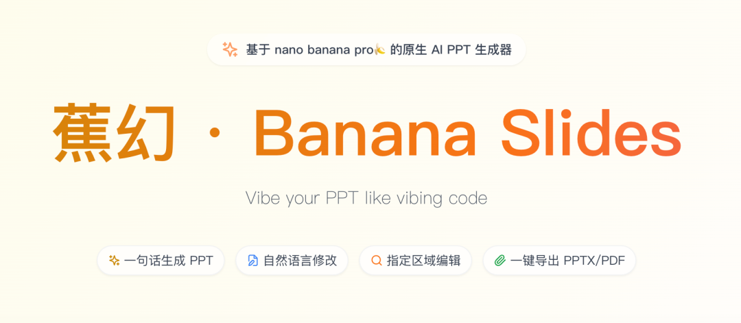 做 PPT 一直是职场、校园里的高频痛点:排版耗时、风格难统一、套模板千篇一律、二次编辑繁琐。最近 GitHub 上一个名为Banana Slides的开源项目彻底火了,它依托 Google Gemini 系列模型,把 AI 原生设计能力融入幻灯片生成,不靠固定模板,每页都是独立原创设计,上线数月便收获大量开发者青睐。