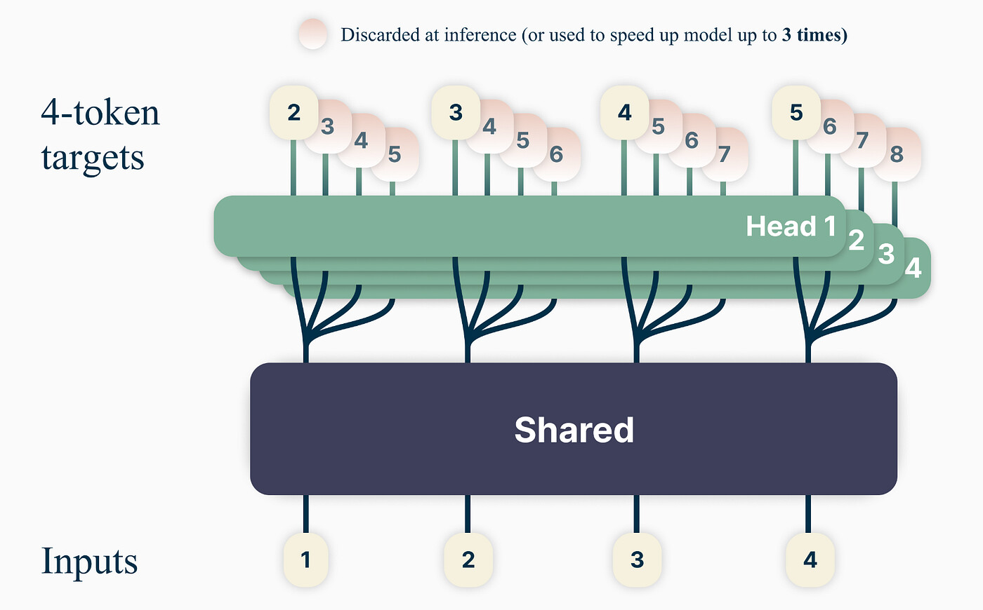 - MTP(Multi-Token Prediction):级联式多令牌预测模块,一次预测多个未来token(训练时)。提升token间依赖捕捉,推理时可选加速生成,同时改善模型质量。