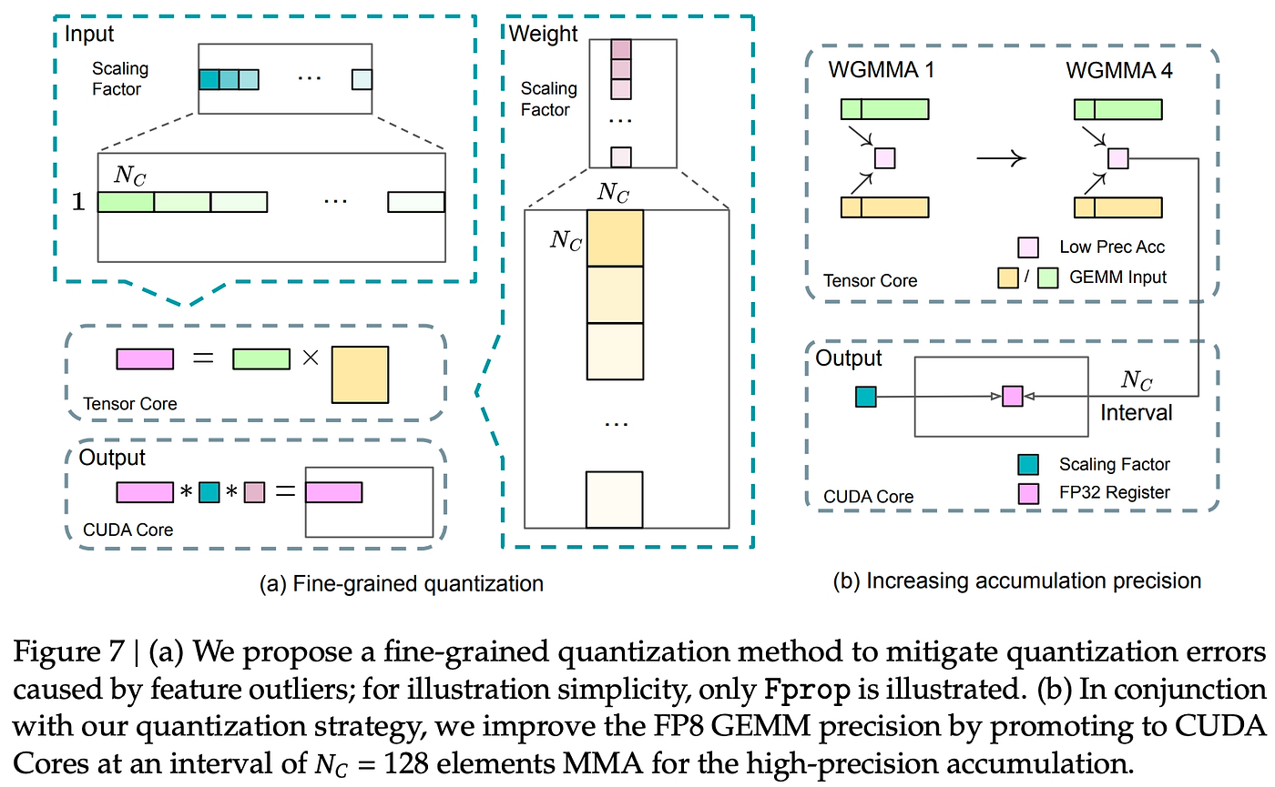 (FP8混合精度设计:计算密集低精度,敏感部分高精度)