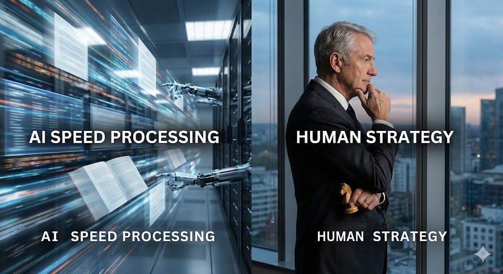 这也意味着,“记忆力”不再是律师的核心竞争力。 当机器能完美覆盖“信息”(Information)的获取与校验时,人类的价值将极度收缩并聚焦于“智慧”(Wisdom)与“决断”(Judgment):