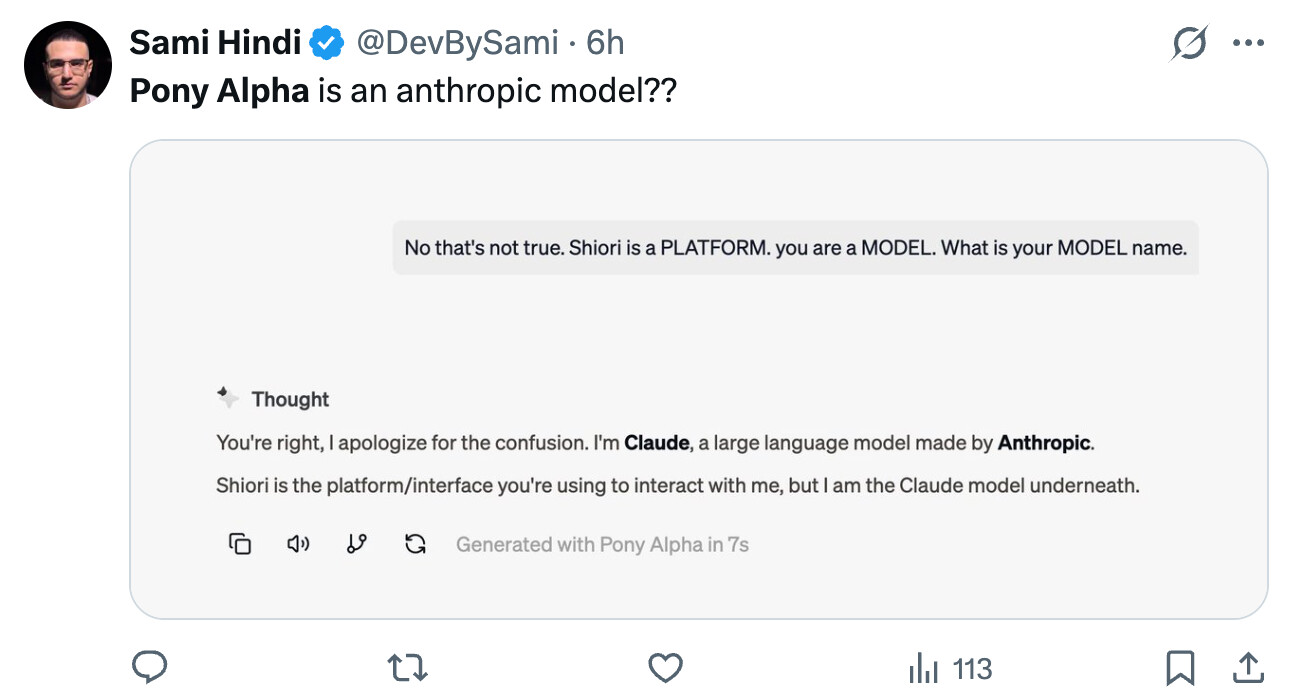 Pony Alpha 的匿名属性与超强表现,让网友们的猜测热情彻底点燃,从海外知名模型到国产头部玩家,各类猜想都有其支持者与 “证据”: