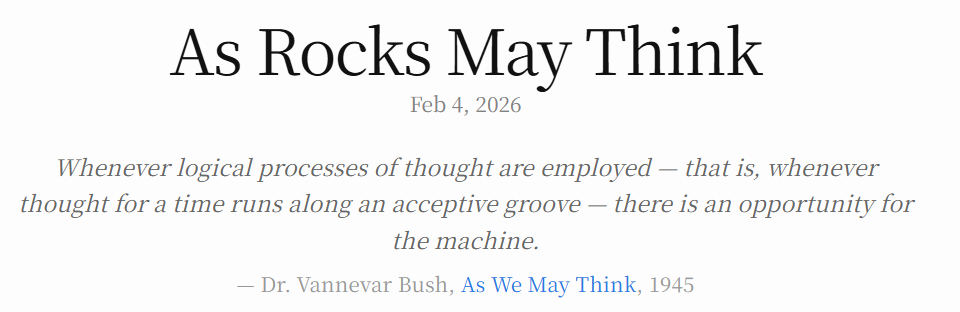 Eric Jang 用 “亢奋” 描述这一进程,并非盲目乐观,而是提醒我们关注 “进步速度”—— 未来 24 个月,AI 推理能力的演化可能远超想象。模型仍会犯错,但 “会思考的 AI” 本身就是一场革命。正如 1945 年 Dr. Vannevar Bush 所言:“每当逻辑思考过程被运用,机器就有了介入的机会”。