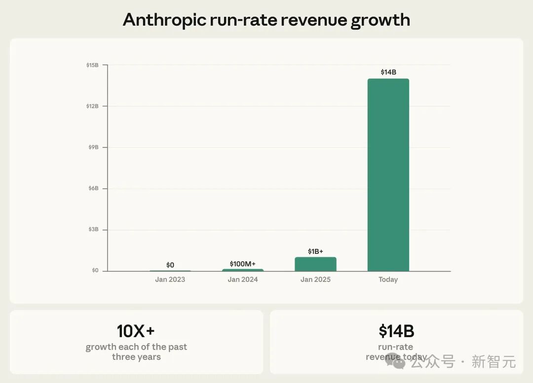 Anthropic 的增长神话不止于市场份额,营收表现更是刷新行业认知。截至 2026 年 3 月,其年化收入(ARR)已突破 190 亿美元,距离 200 亿美元仅一步之遥,较去年底的 90 亿美元实现翻倍,更创下 “两周暴涨 50 亿美元” 的惊人纪录。