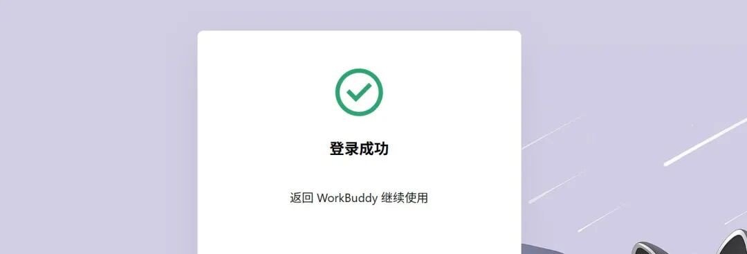 当页面显示**「登录成功」**提示后,返回 WorkBuddy 即可进入工具主界面,登录步骤完成。